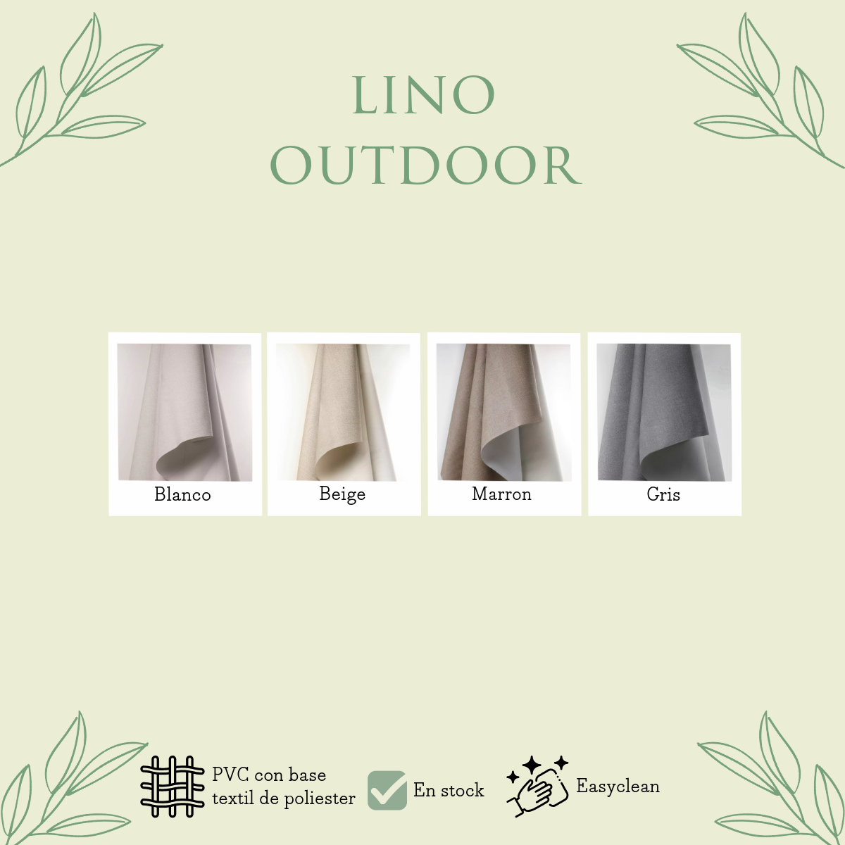 Revestida en tela impermeable Bagun o Cordura, color a elección, (consultar disponibilidad) o El Lino Outdoor "Glasgow" tela de alta calidad, ideal para tapicería de exteriores como sillones y sillas de jardín, impermeable, perfecta para muebles de uso diario, resistente a la intemperie y fácil de limpiar. Con un aspecto símil lino elegante y natural.