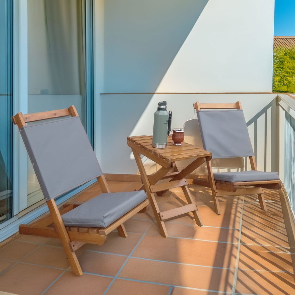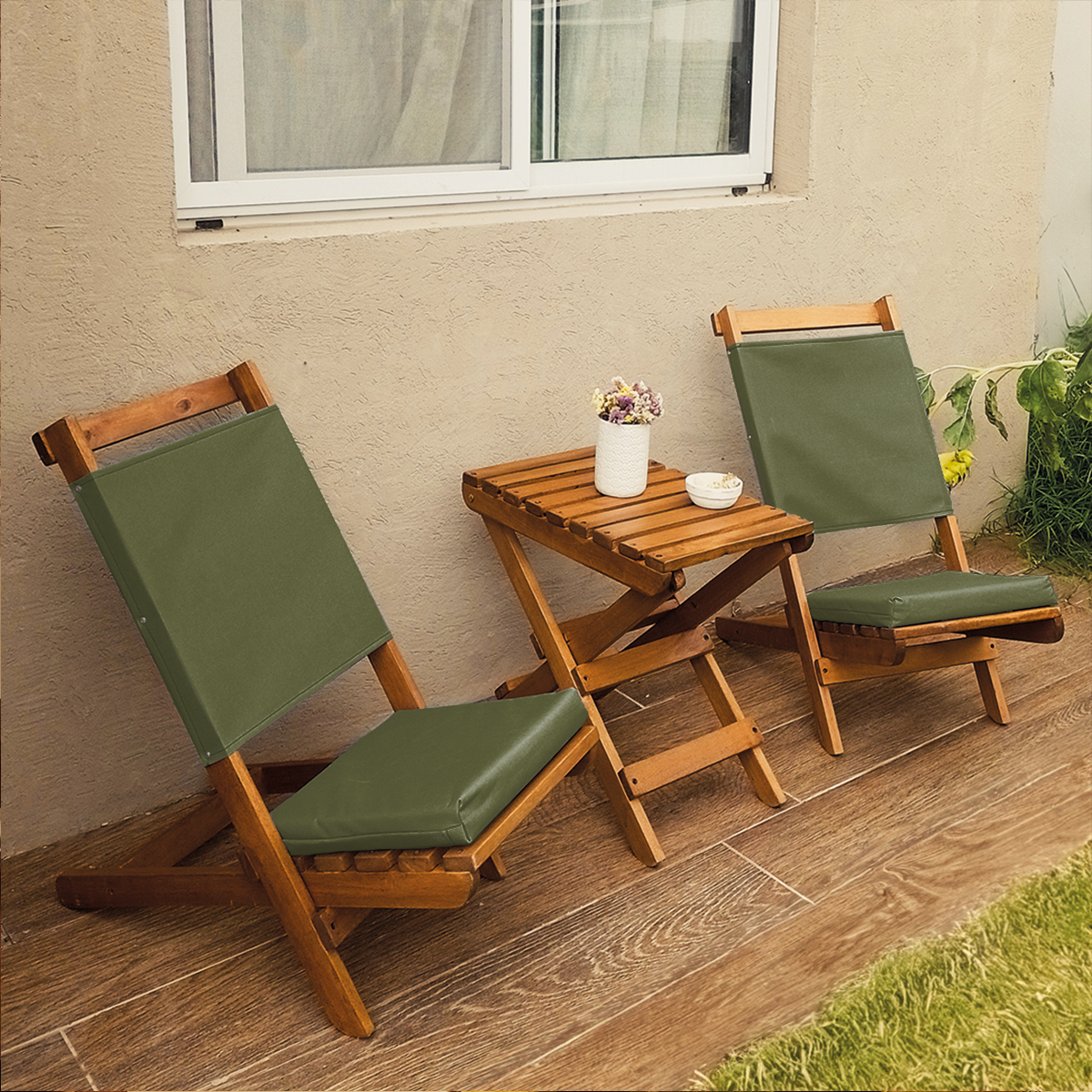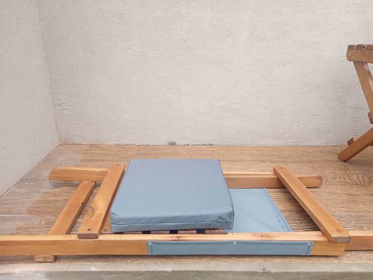 Estructura simple pero elegante para decorar diferentes espacios como jardines, patios, balcones, elaborada en madera de eucalipto barnizada con 3 capas de Cetol haciendola apta para exterior. Comodo respaldo en tela impermeable y resistente (cordura), confortable asiento en goma espuma de alta densidad 5 cm de espesor revestido en tela cordura.