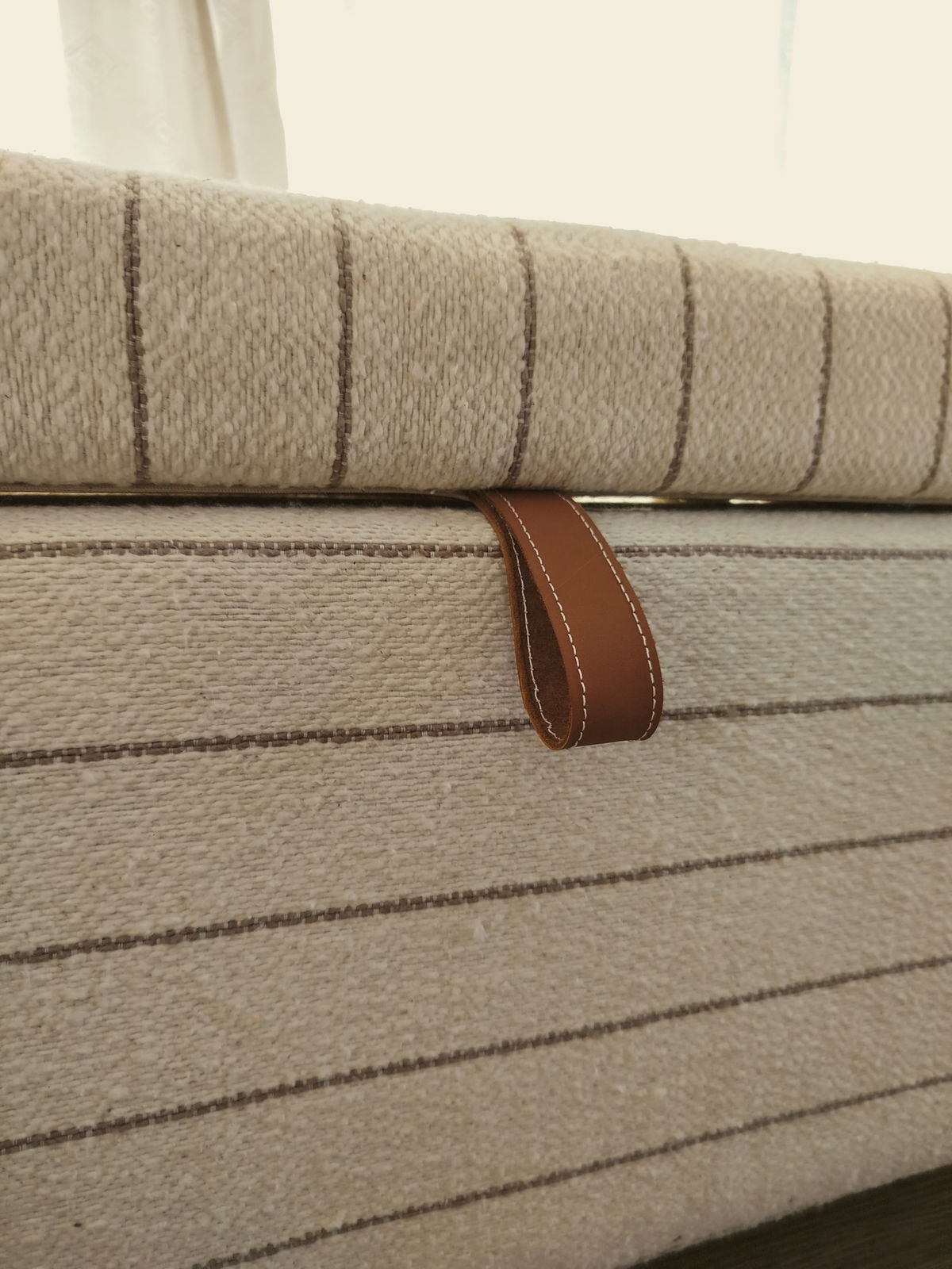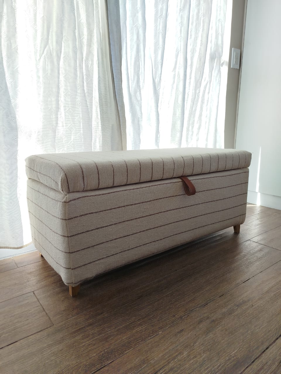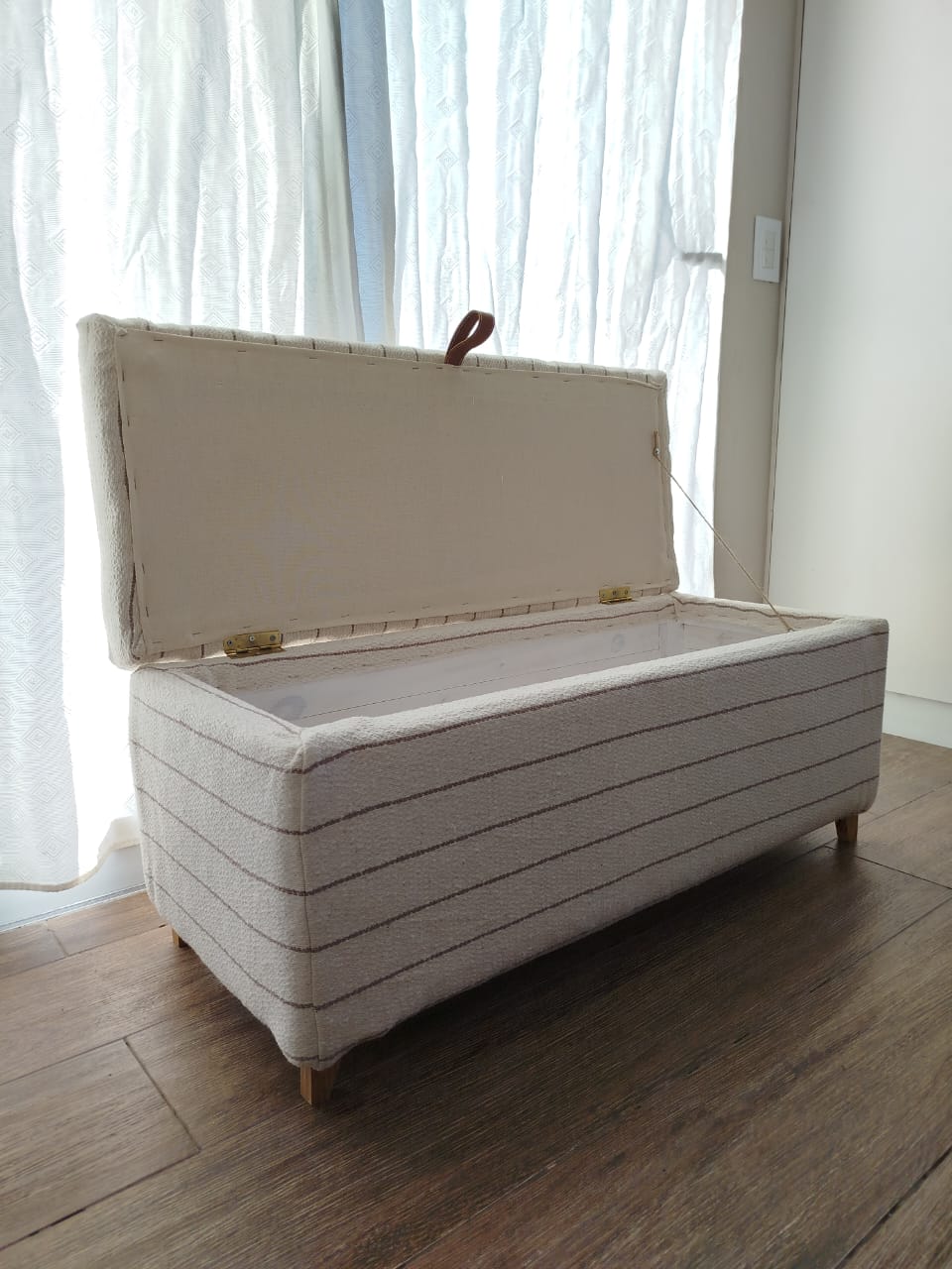 Cada banco está hecho a mano, lo que le confiere un diseño artesanal . Además, el detalle en cuero para la apertura de la tapa añade un toque de distinción, resaltando su calidad y el esmero en su elaboración.