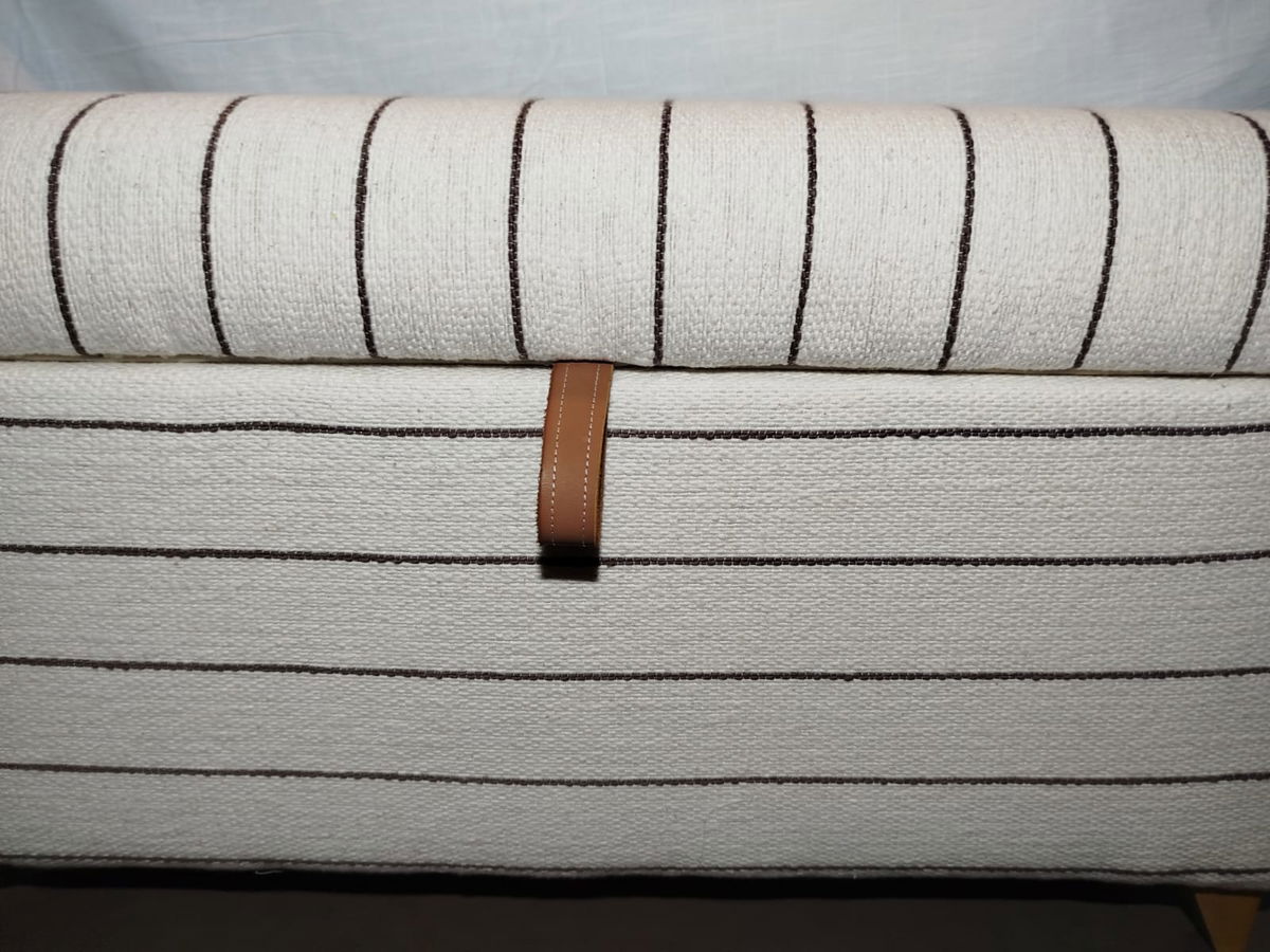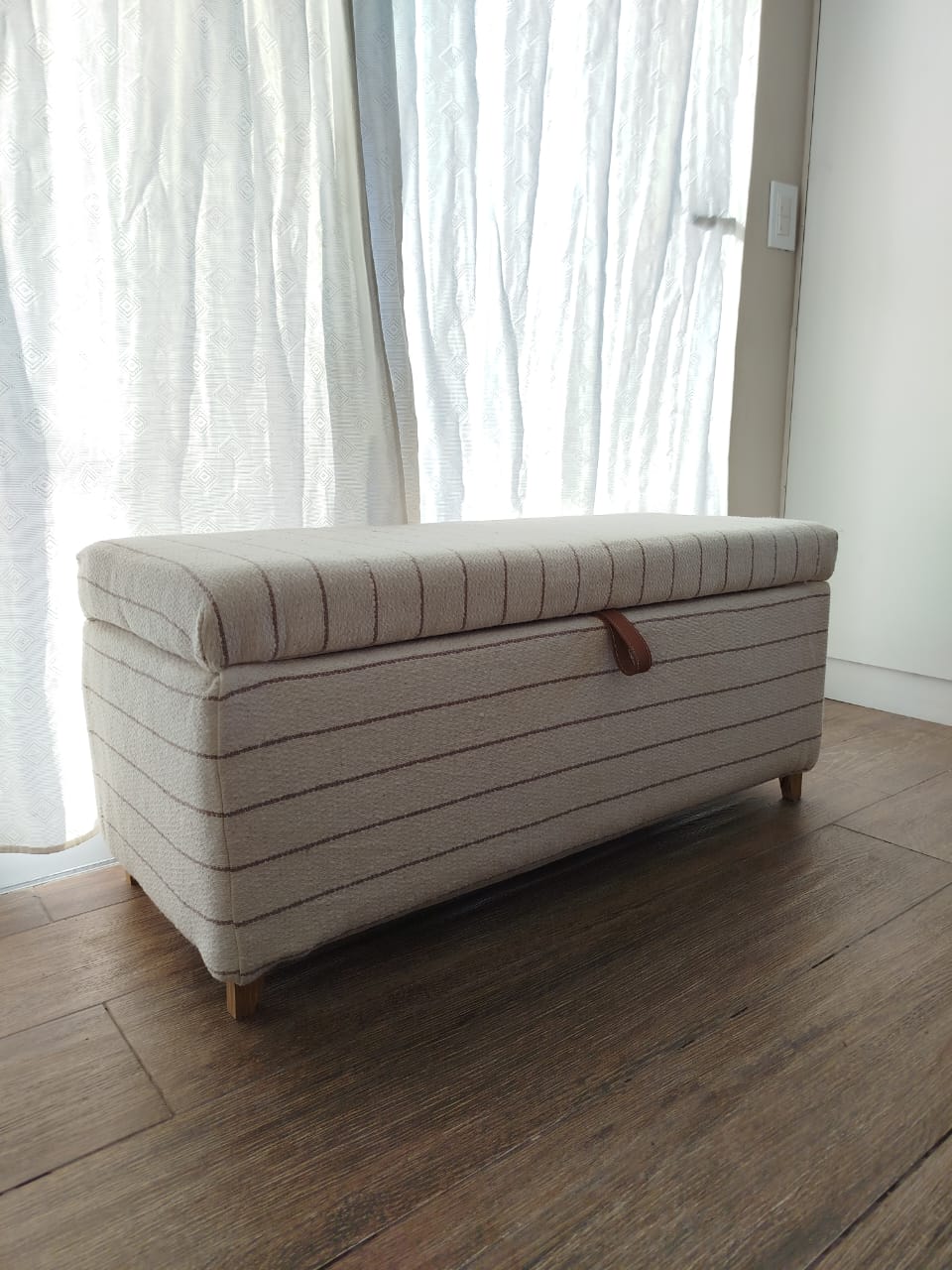 Cada banco está hecho a mano, lo que le confiere un diseño artesanal . Además, el detalle en cuero para la apertura de la tapa añade un toque de distinción, resaltando su calidad y el esmero en su elaboración.
