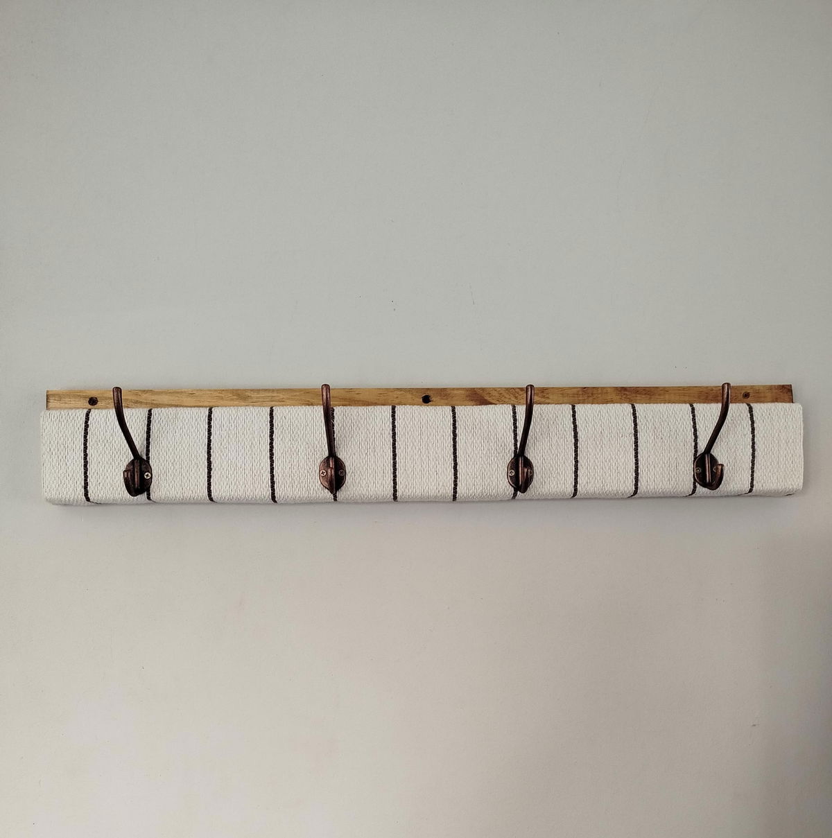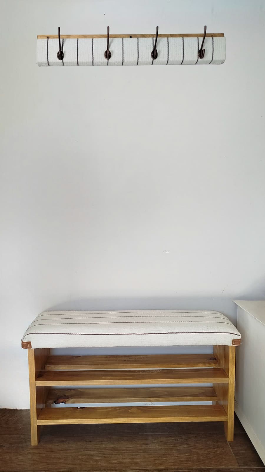 ¡solo necesitarás dos tornillos para colocarlo! Además, ofrecemos la posibilidad de elaboración personalizada. Puedes elegir las medidas y telas que mejor se adapten a tus necesidades y gustos, asegurando que tu perchero sea único y perfecto para tu hogar.