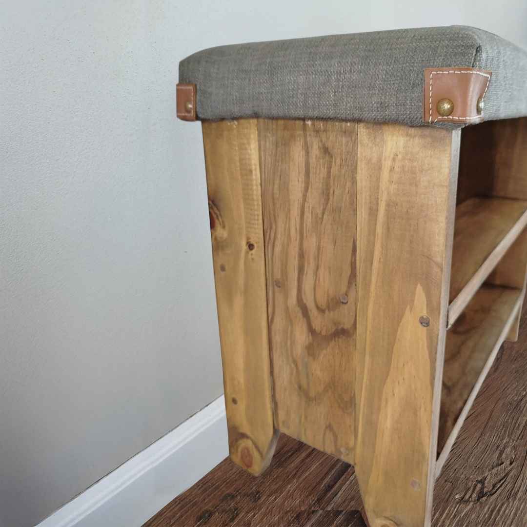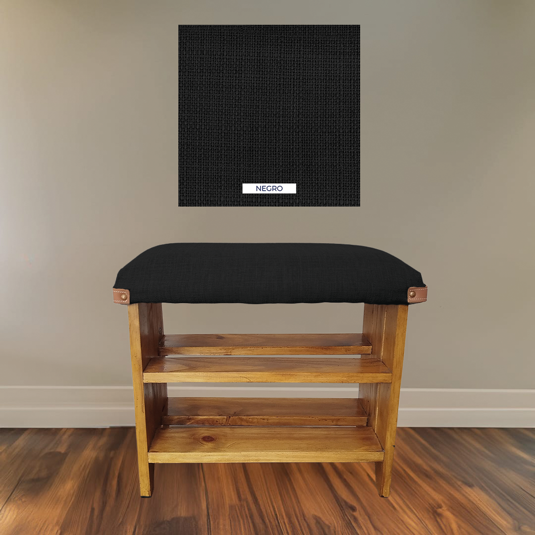 - Comodidad: Incluye un taburete súper cómodo, realizado en espuma de 5 cm de alta densidad. Este taburete, esta adornado con detalles de talampaya en sus extremos, se convierte en la solución ideal para sentarse y ponerse o quitarse el calzado.