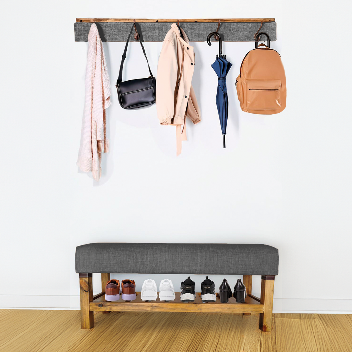 Pie de Cama Banco zapatero 100cm + Perchero Lino
