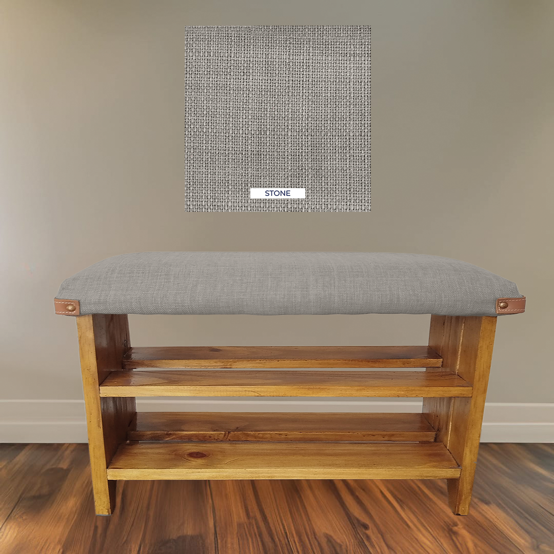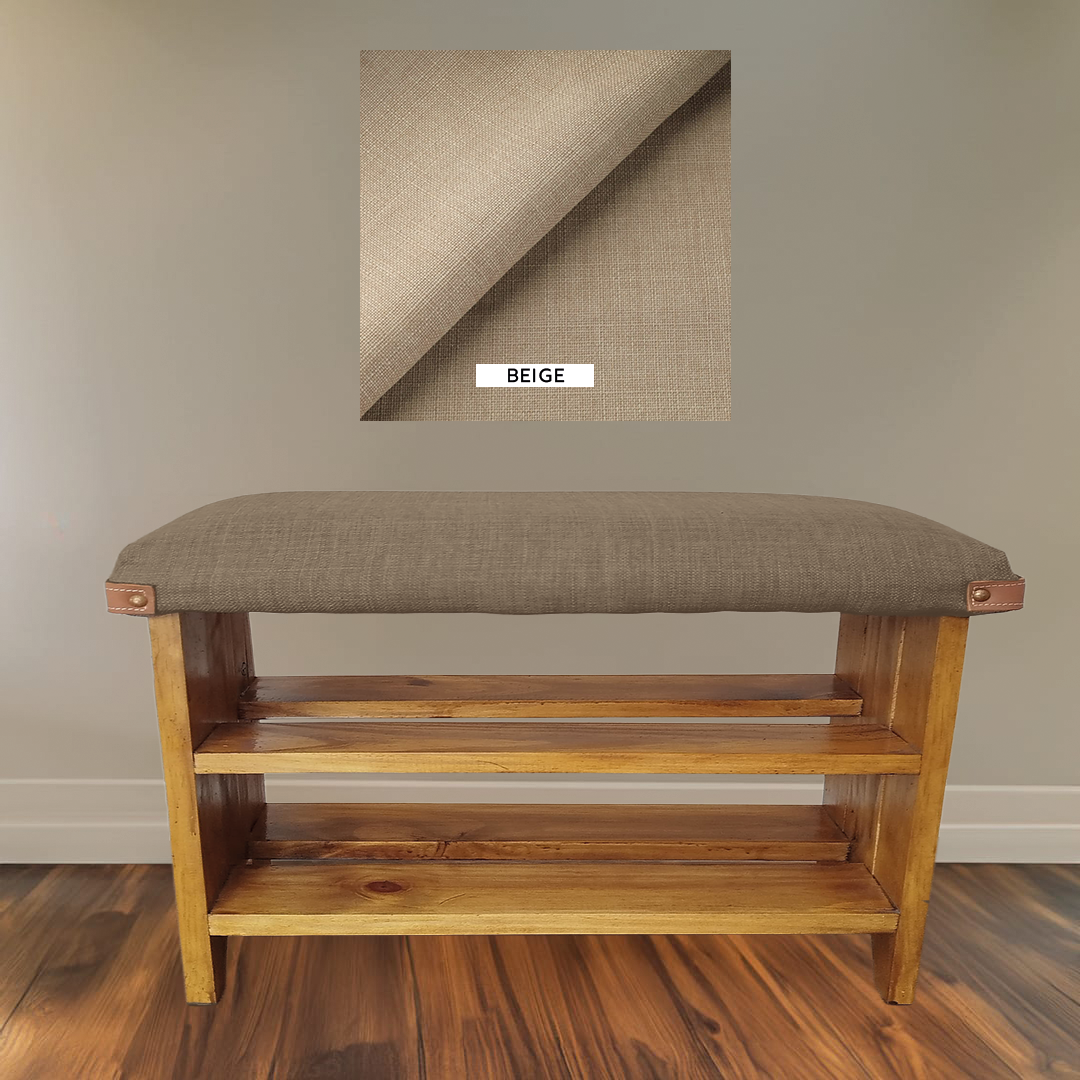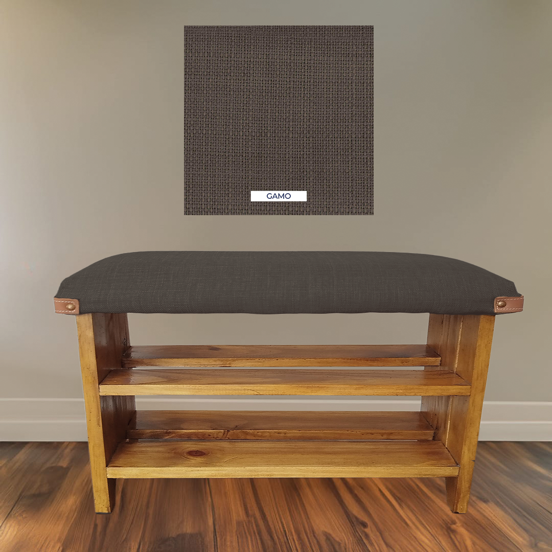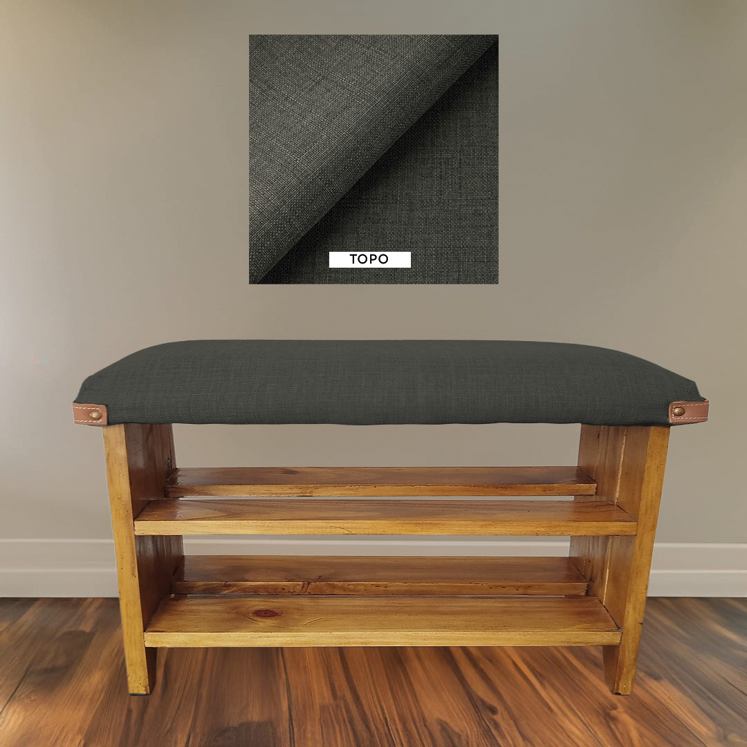 - Comodidad: Incluye un taburete súper cómodo, realizado en espuma de 5 cm de alta densidad. Este taburete, esta adornado con detalles de talampaya en sus extremos, se convierte en la solución ideal para sentarse y ponerse o quitarse el calzado.