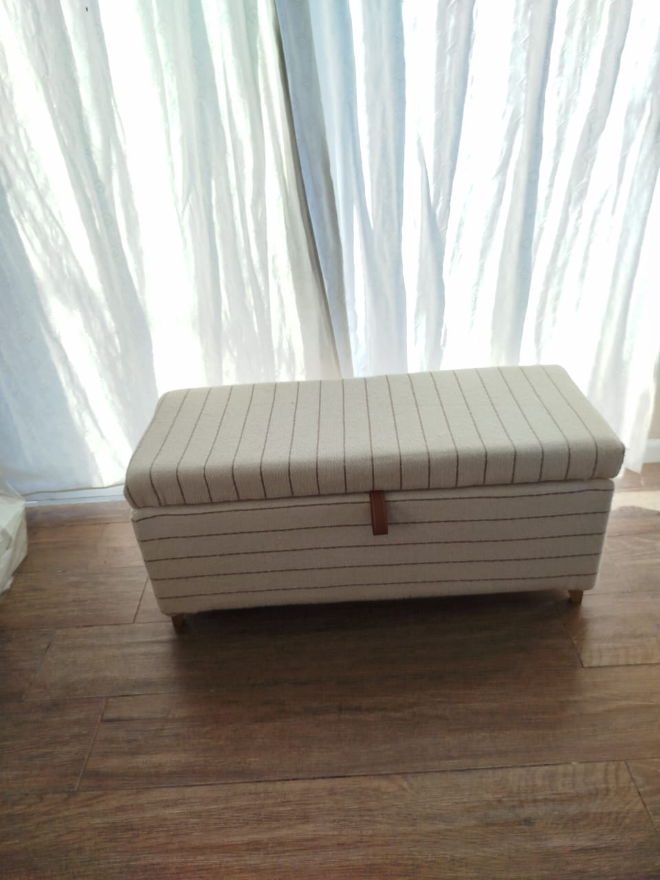 Cada banco está hecho a mano, lo que le confiere un diseño artesanal . Además, el detalle en cuero para la apertura de la tapa añade un toque de distinción, resaltando su calidad y el esmero en su elaboración.