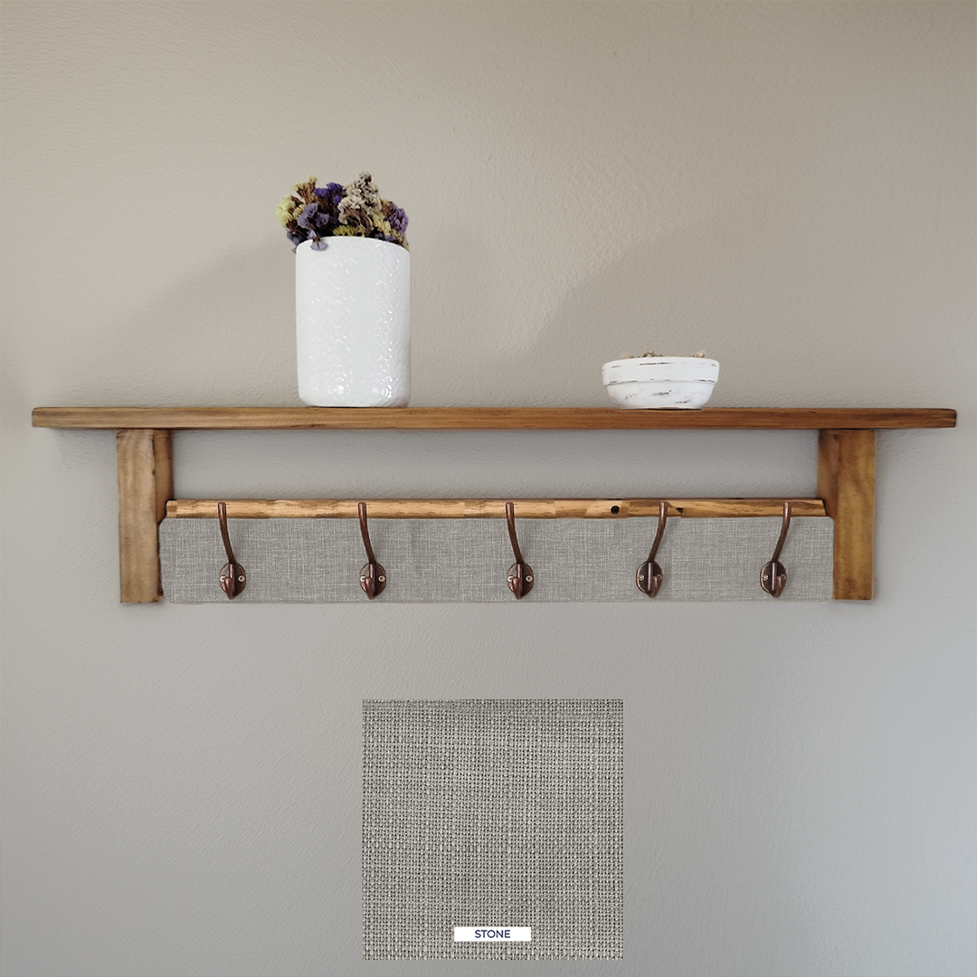 ¡solo necesitarás dos tornillos para colocarlo! Además, ofrecemos la posibilidad de elaboración personalizada. Puedes elegir las medidas y telas que mejor se adapten a tus necesidades y gustos, asegurando que tu perchero sea único y perfecto para tu hogar.