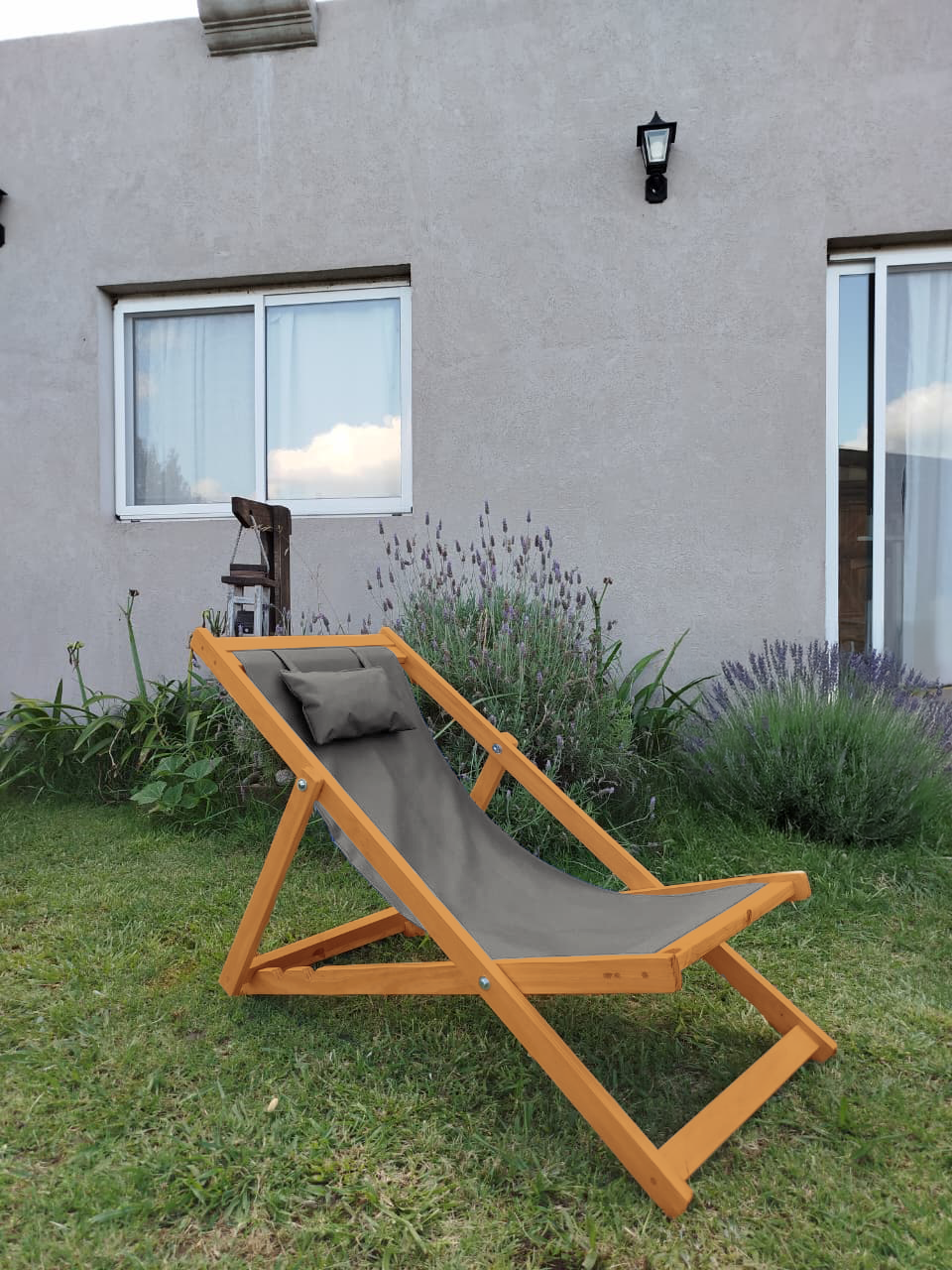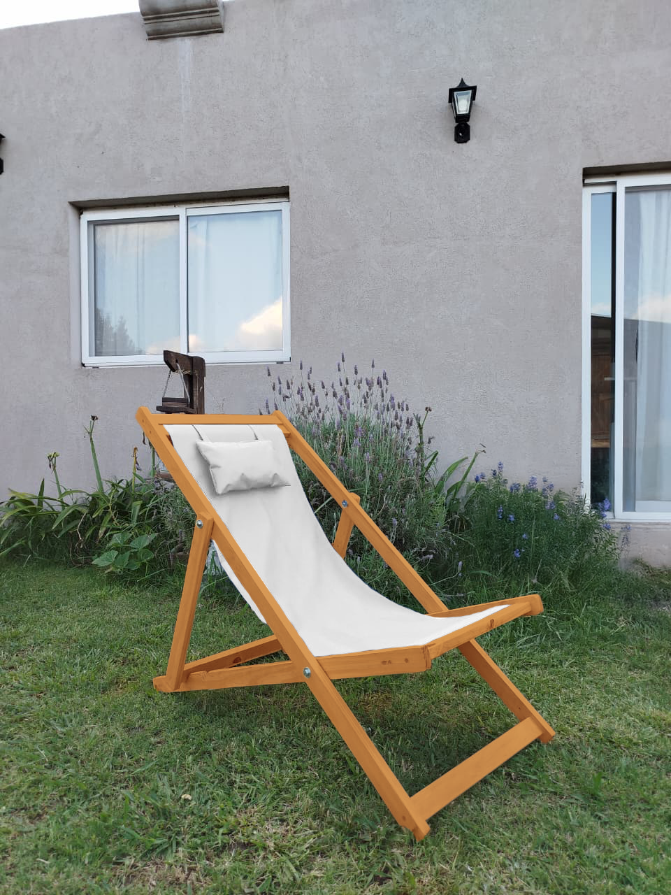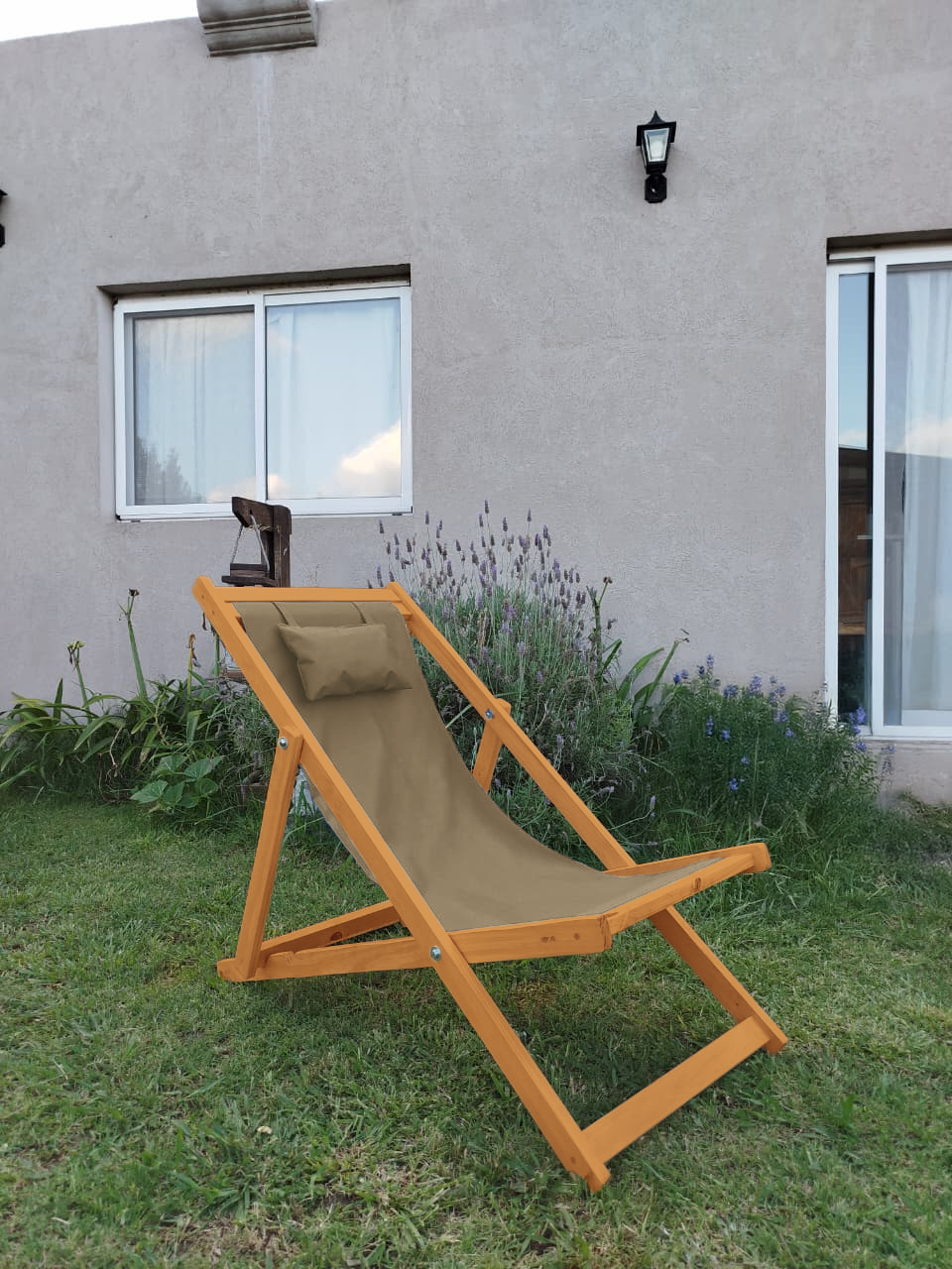 Reposera Premium Madera C/almohada Color Roble claro 3 Posiciones