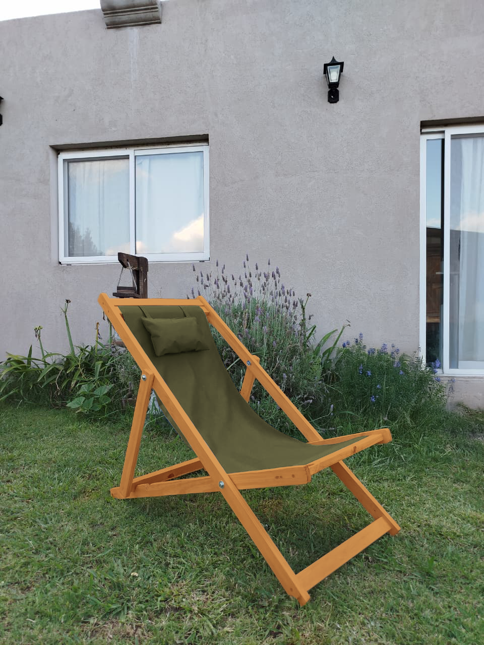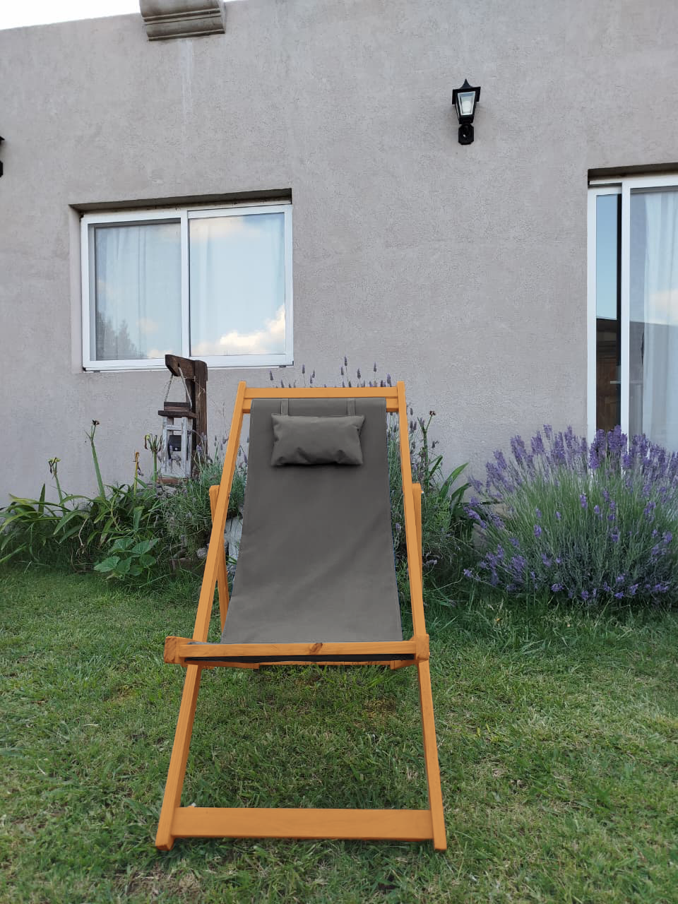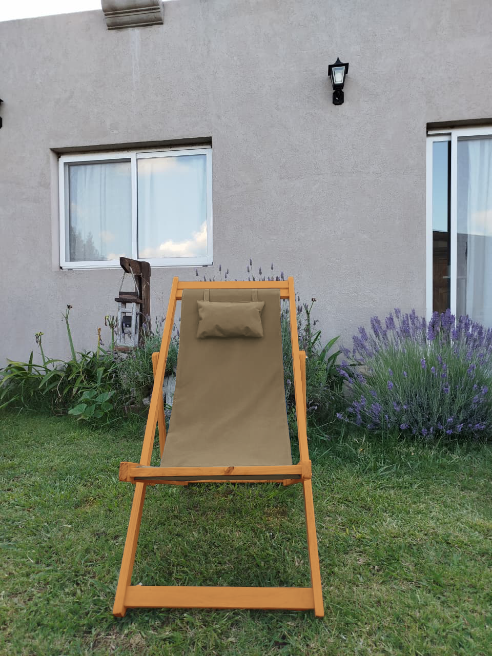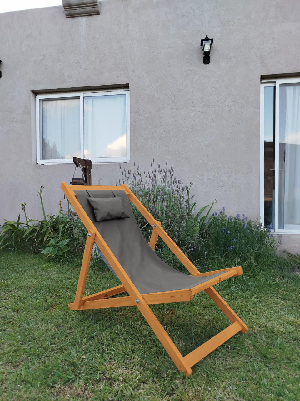 Reposera Premium Madera C/almohada Color Roble claro 3 Posiciones